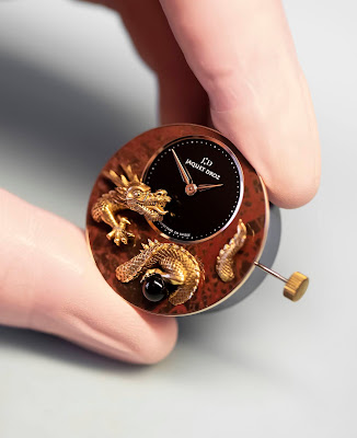 Jaquet Droz presents a very exclusive interpretation of the Earth Dragon, the fifth element in the 60-year cycle of the traditional Chinese calendar. For this new creation, in a series strictly limited to 8 pieces (Numerus Clausus), Jaquet Droz has chosen its Petite Heure Minute as its canvas. With its off-centered dial at noon, it offers a large surface on which Jaquet Droz has skillfully deployed the magic of its Ateliers d'Art.